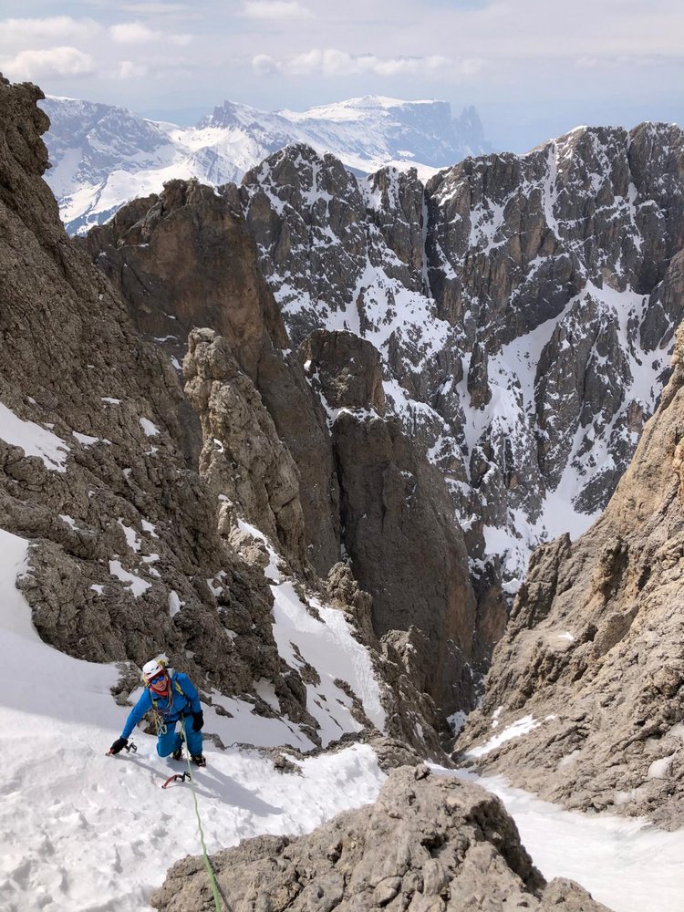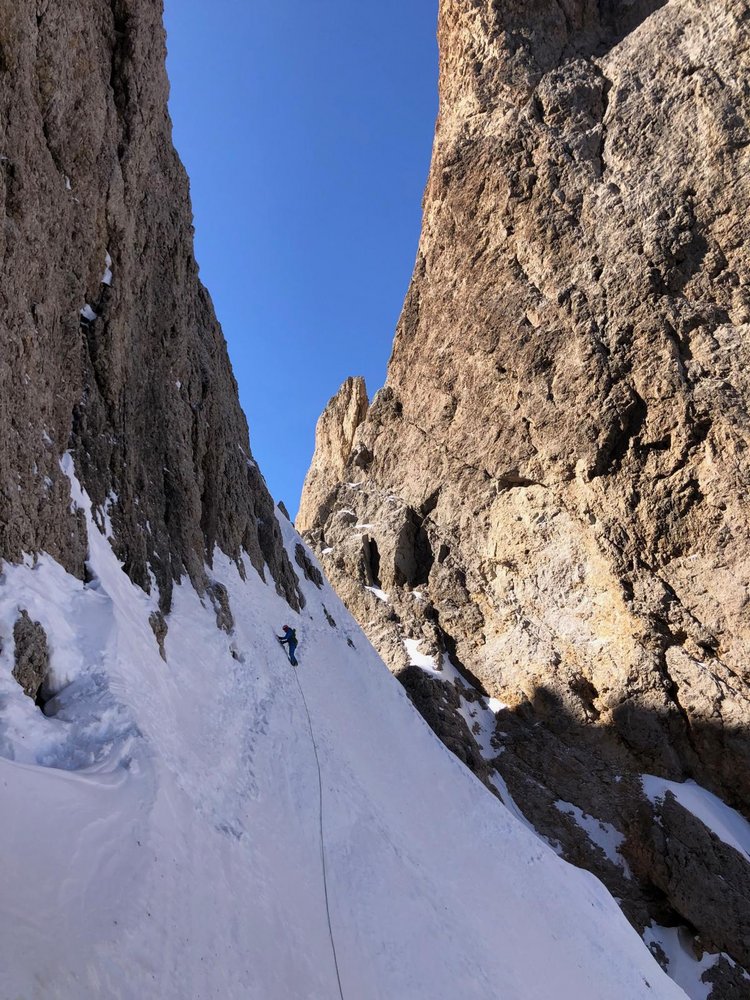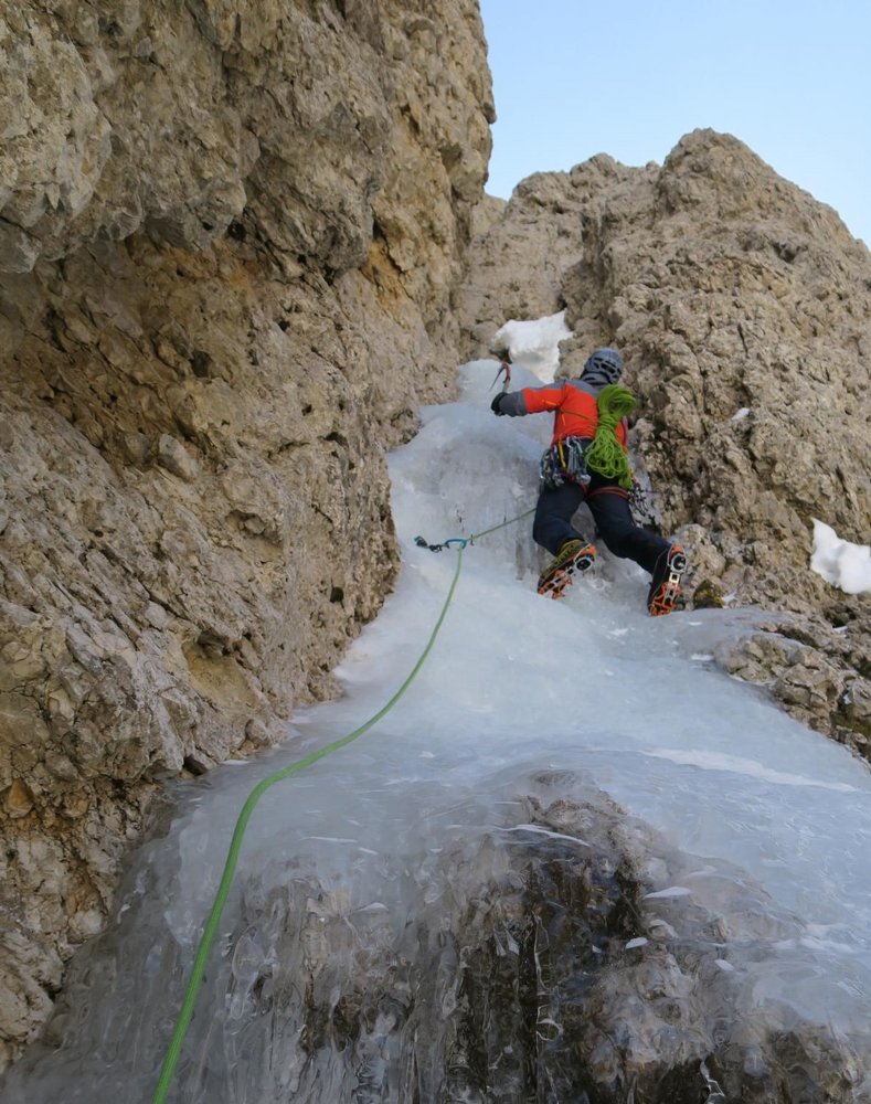 Eindrucksvolle Tour in wildem Langkofel - Ambiente, Schwierigkeit nicht zu unterschätzen da man oft unterschiedliche Eisverhältnisse vorfindet.