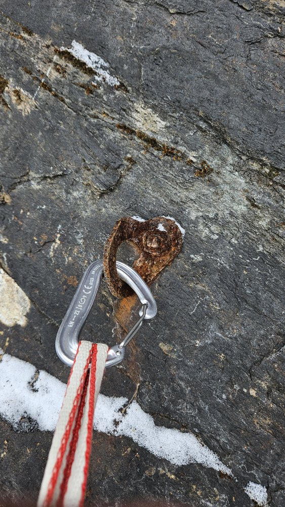 Oder über die Tour "MFG" (orografisch rechts der Tour) 2x 60 m abseilen.