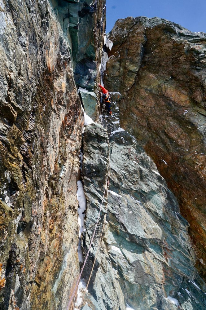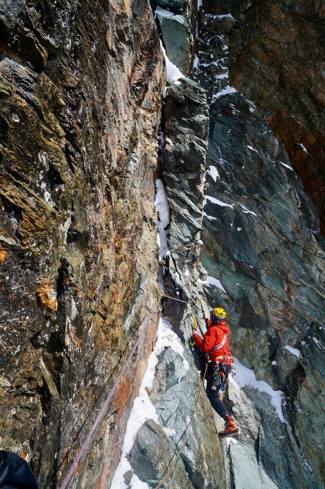 Es handelt sich um eine wirklich gute kombinierte Kletterei, die in sehr logischer Linie in 9 Seillängen zum Stüdlgrat führt.
