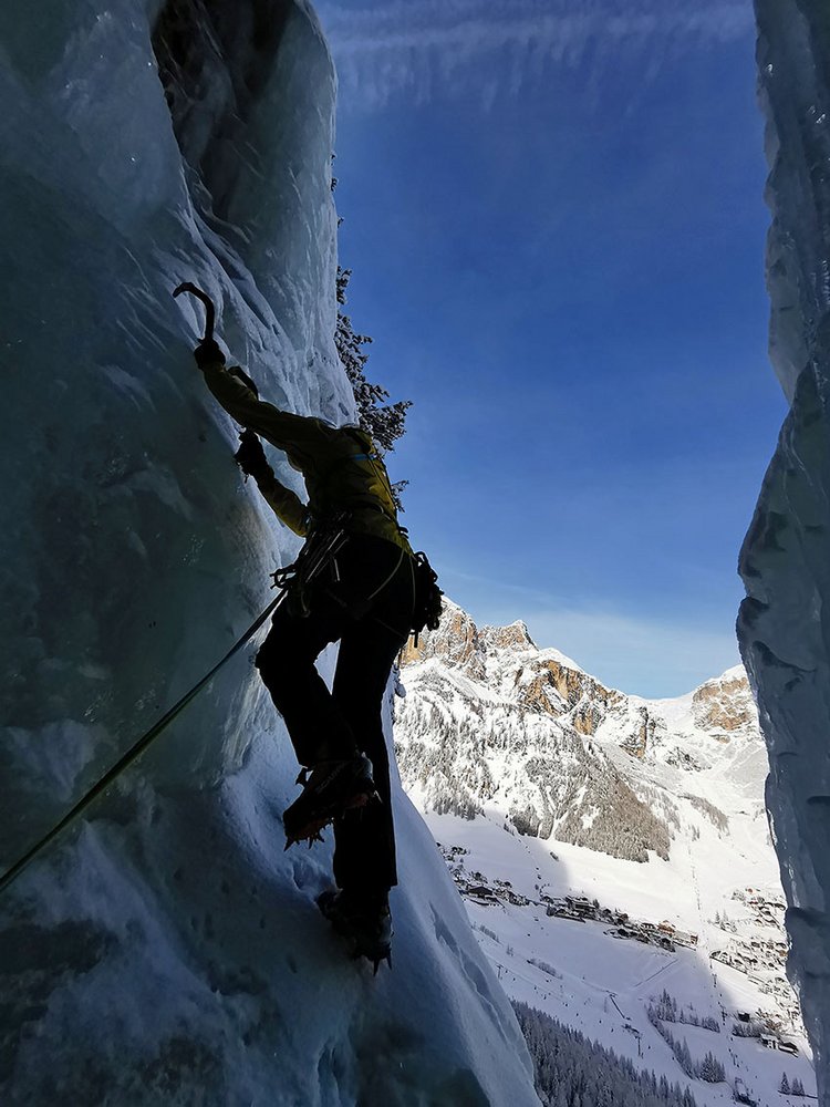 Die Eisfälle von Kolfuschg/ Corvara sind leicht erreichbar, haben oft gutes Eis und sind daher entsprechend stark frequentiert.