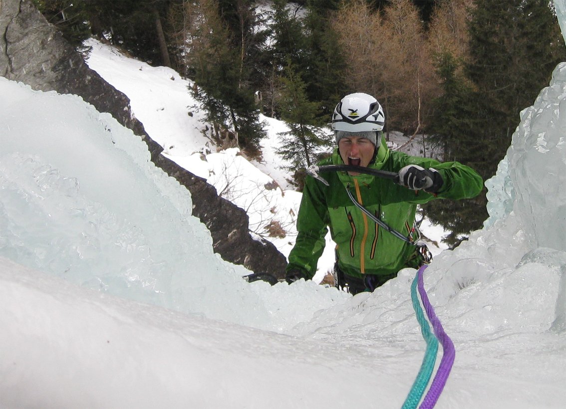 Schöne Eiskletterei in steilem Blumenkohleis.