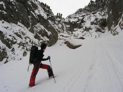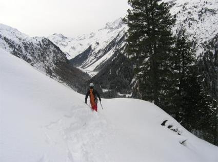 Auf sichere Schneeverhältnisse achten - die Routen liegen in einem großen Lawinenkegel.