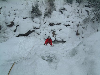 Meist um WI 3 auch schwere Var. Toprope möglich (guter und beliebter Übungsfall).