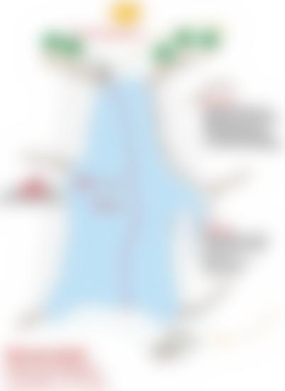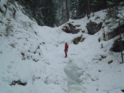 Äußerst lohnender Einsteiger-Eisfall in der Eisregion Weißbach/Hohlwegen. Das breite Eisschild mit seinen 55 m Höhe hat viele Möglichkeiten und bietet auch mehreren Seilschaften Platz. Oben wartet ein sicherer Bohrhakenstand und der Abstieg geht gemütlich über rechts zu Fuss. Es gibt auch auf dem Weg zum Wasserfall noch einige Übungsmöglichkeiten.