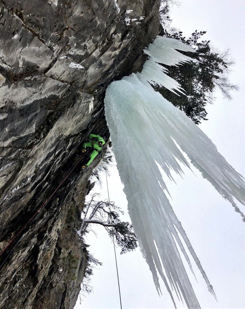 Die Einstiegsseillänge und die darauffolgende Seillänge sind reine Eislängen, wobei die Zweite etwas anspruchsvoller ist als die Erste. Die dritte Länge bietet Mixed-Gelände im 7.Grad und einen Eisausstieg entlang eines steilen Zapfens. Die letzte Länge ist zugleich die schwierigste und steilste der Route. Zunächst klettert man im überhängenden Fels Teil hin zum steilen markanten Ausstiegsvorhang, der sachtes und überlegtes Klettern abverlangt. Dieser Zapfen bildet sicherlich das Herzstück der Route. Gleichzeitig unterstreicht dieser die Steilheit der Route.