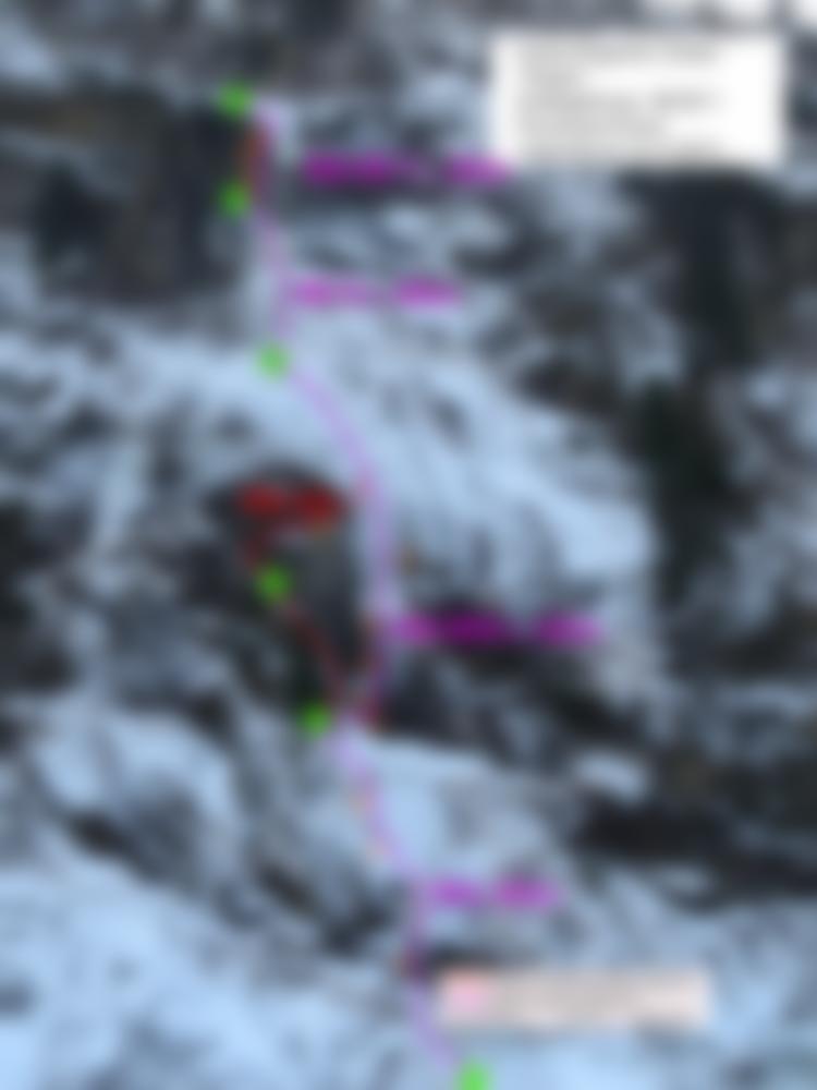 Zwei steile Passagen bis M6/WI 7-, sonst meist um WI 4/4+