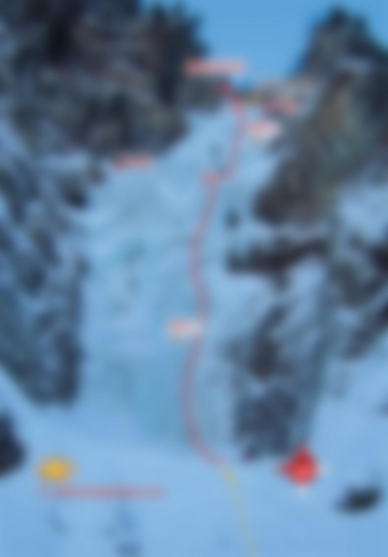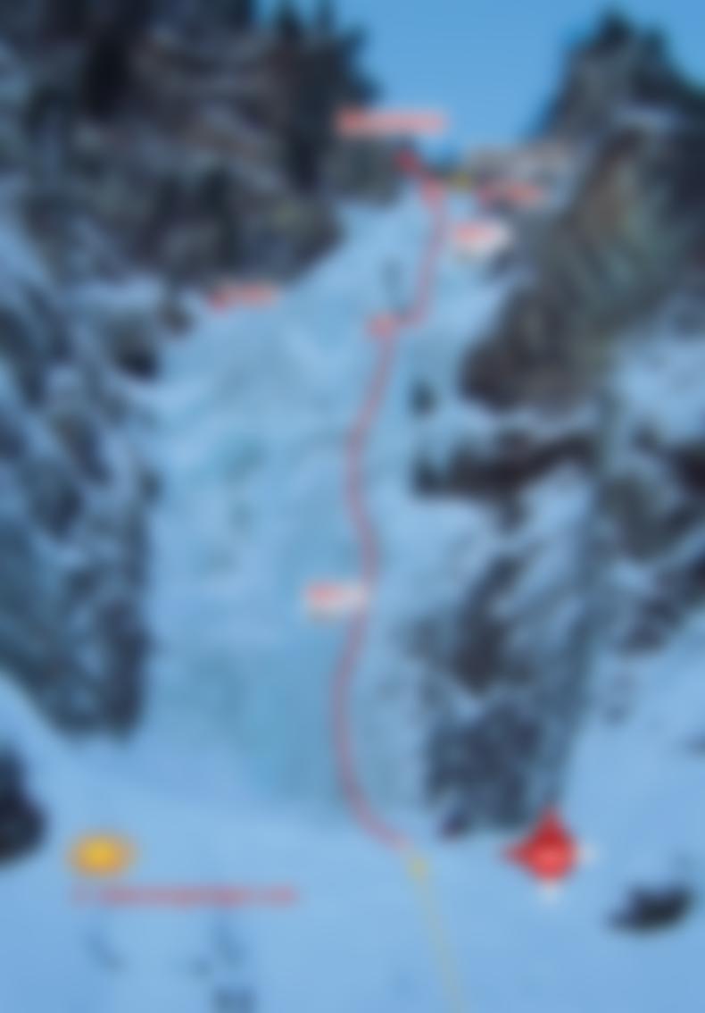Es befindet sich rechts des Falles noch eine gute, versteckte Möglichkeit (Gully WI4, 60 m). Auch links vom Fall gibt es einen leichten Eisschlauch, ca. WI 3.