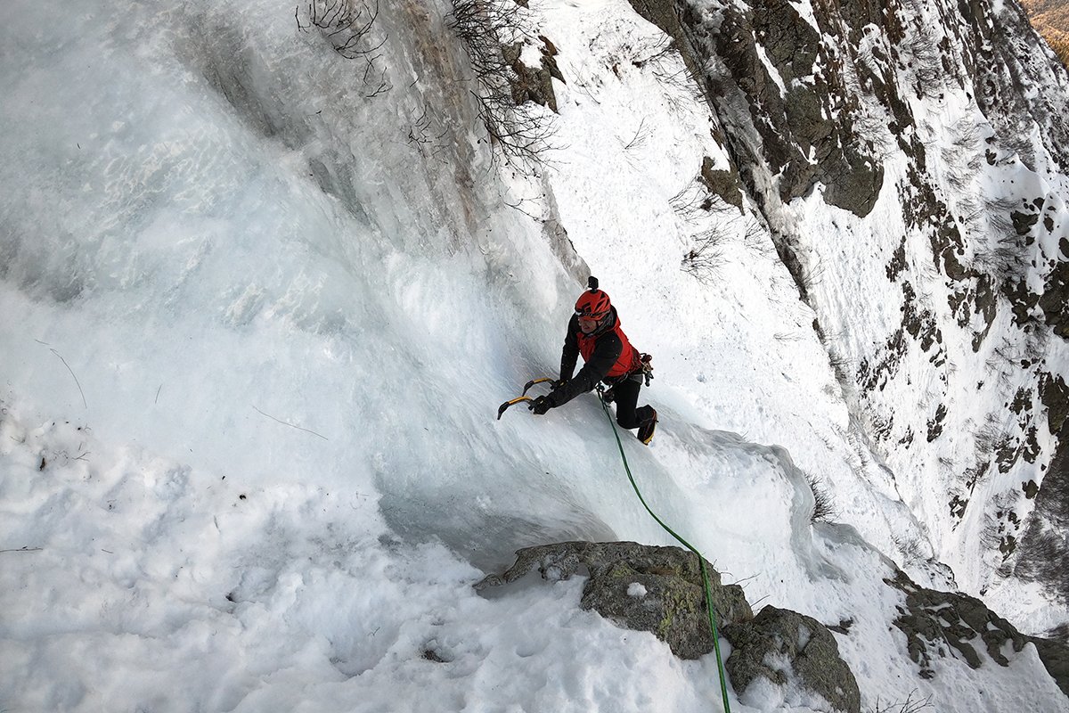 Ein kleiner Eisfall von mittlerem Schwierigkeitsgrad mit zwei Möglichkeiten (Links und Rechts). Von den beiden Routen ist die rechte Variante die interessantere. Die Nordausrichtung und die Höhe schaffen schon zu Beginn der Saison günstige Bedingungen für die Eisbildung. Die lange Anfahrt zum Passo del Tonale wird durch einen eher kurzen Zustieg kompensiert.