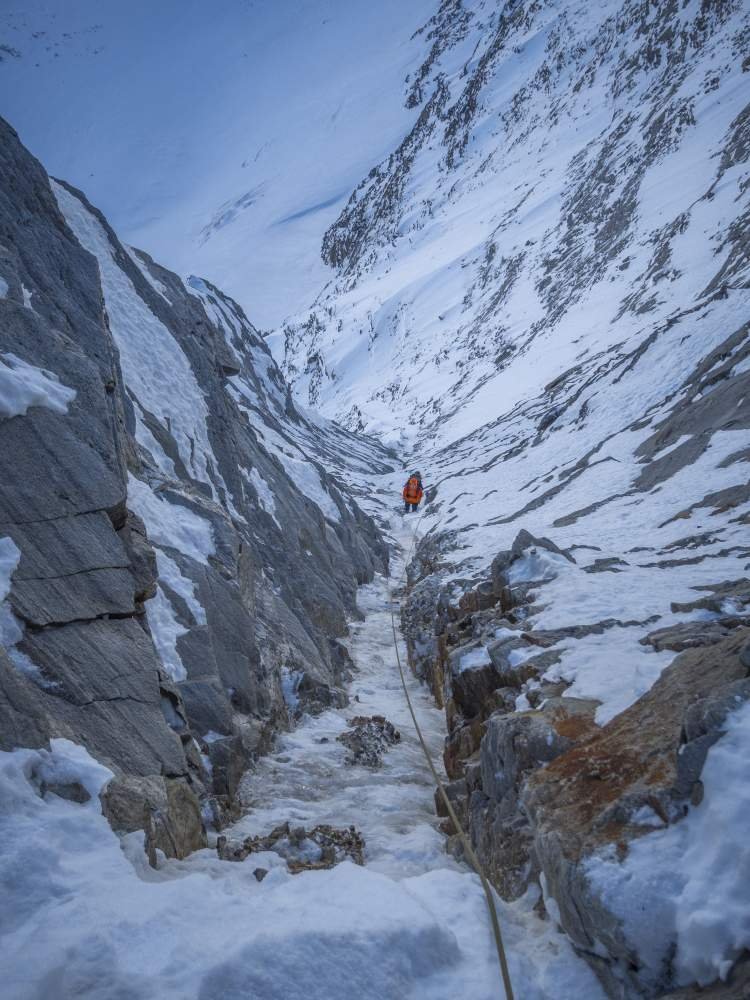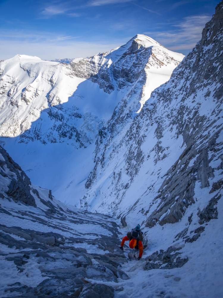 Die Nordwand des Eiskögele gehört zu den vergessenen großen Nordwänden der Ostalpen. Formvollendet und 550 Meter hoch erhebt sie sich über dem düsteren Ödenwinkelkeess. Die markanteste Linie bildet die Welzenbachführe von 1926(!), die die steile Headwall über ein großes Couloir durchsteigt. Die Herausforderungen liegen neben den Kletterschwierigkeiten vor allem in der Logistik, die mit der komplexen Topografie des Berges einhergehen. Trotz der verhältnismäßig geringen Kletterschwierigkeiten handelt es sich dadurch um eine der wildesten Ostalpentouren, die den ganzen Alpinisten fordert.