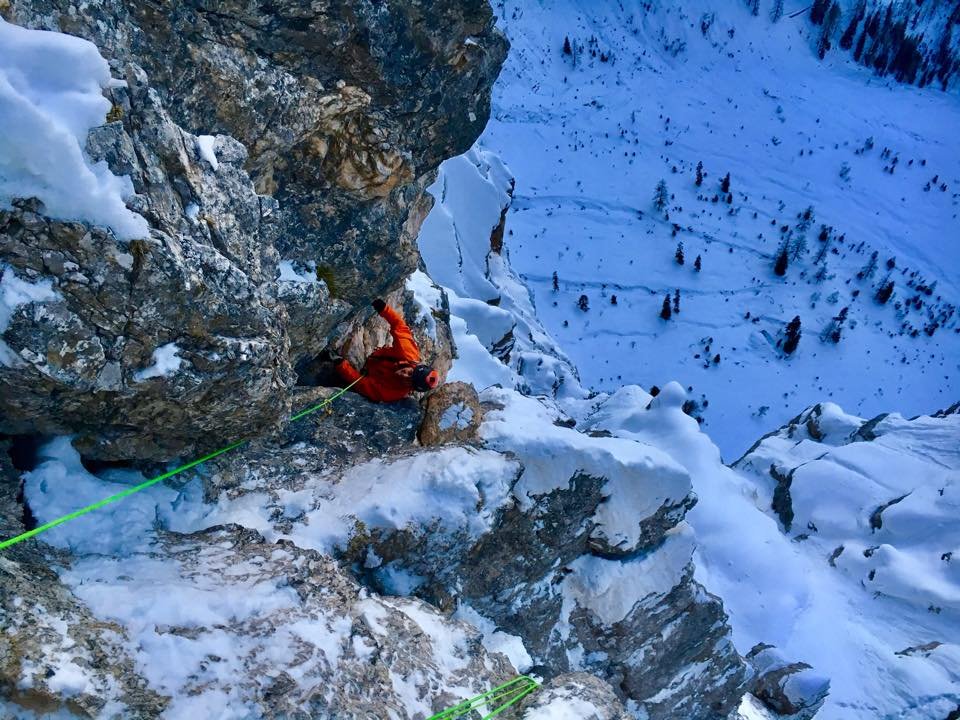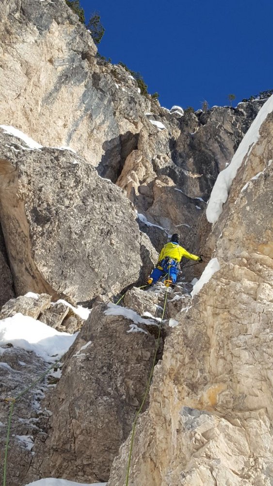 Langer, schöner und alpiner Mixed-Ausstieg zu den Routen an der Rauhen Gaisl.