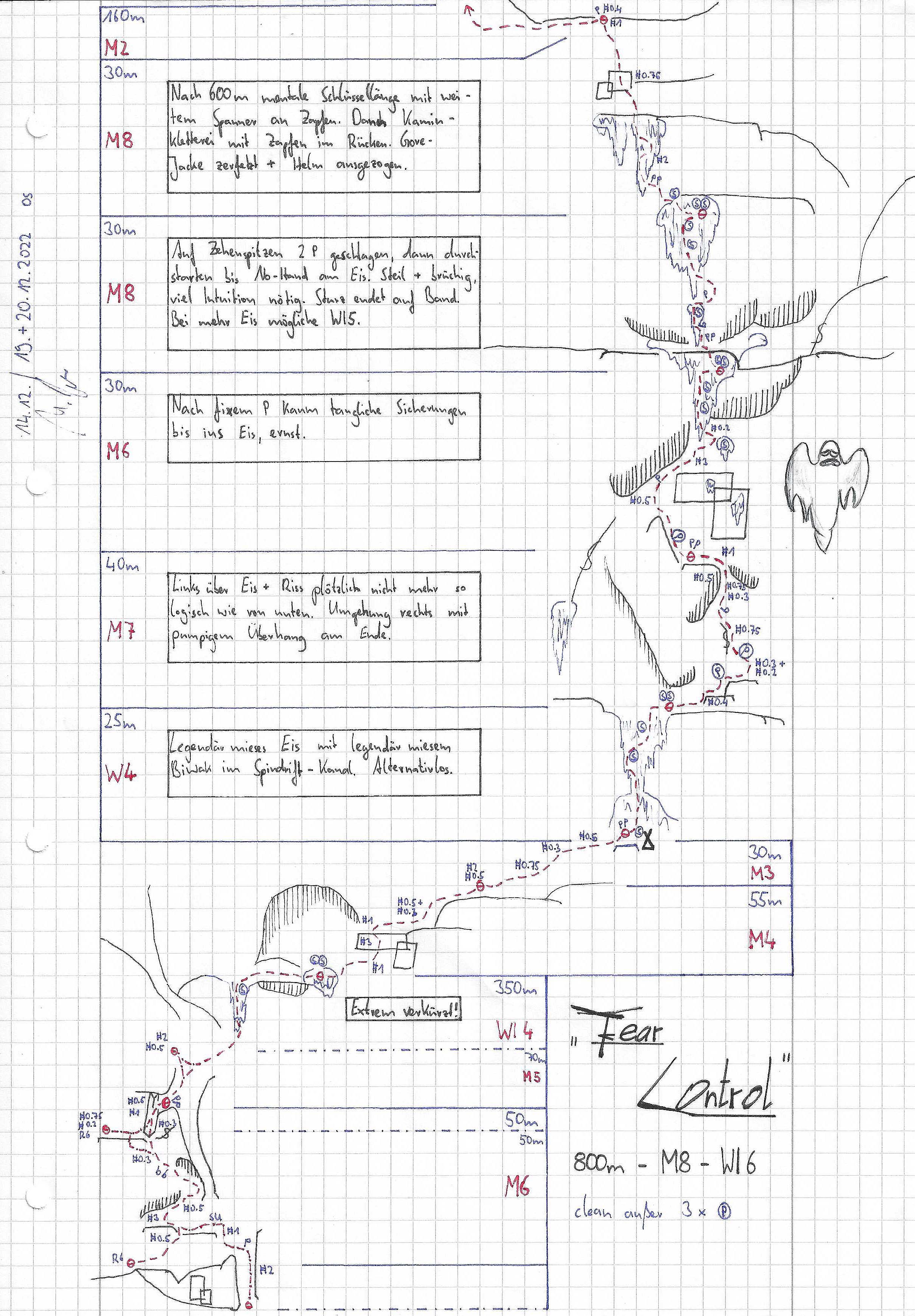 Die oben genannten Schwierigkeitsangaben ergeben für solche Touren überhaupt keinen Sinn. Die Route ist deutlich über "Pandora", "Sagzahnverschneidung" oder "24 hours of freedom" einzuordnen, technisch etwas anspruchsvoller, dafür deutlich weniger gefährlich als "Stalingrad" und evtl. auf einer Ebene mit "Cold Fusion" zu sehen.