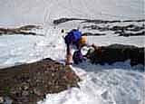 Fels bis 2. und Eis bis max 50 Grad (meist zwischen den Felsen im mittleren Wandteil, bei guter Firnauflage deutlich leichter).