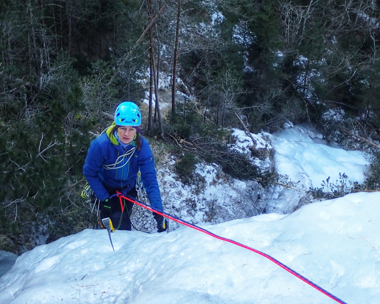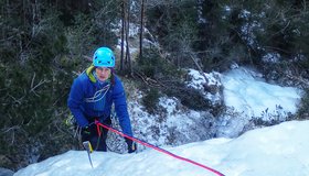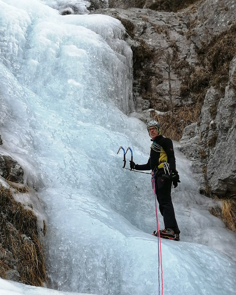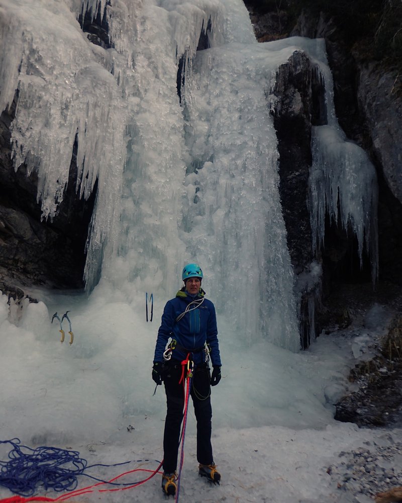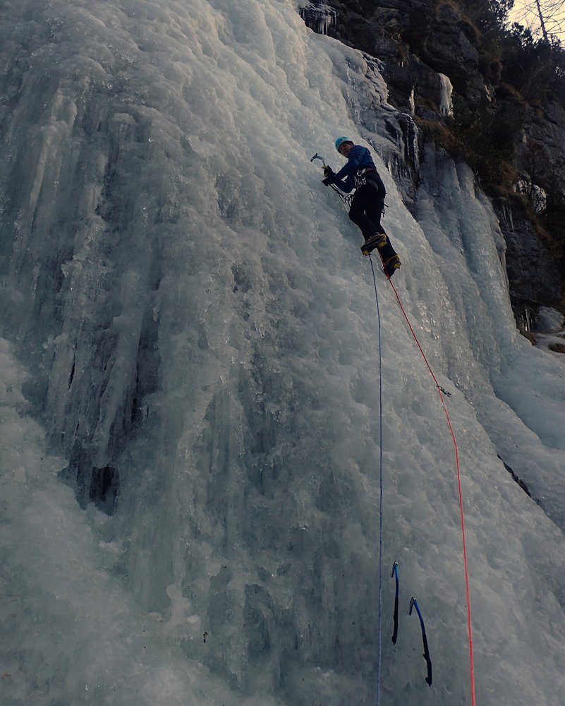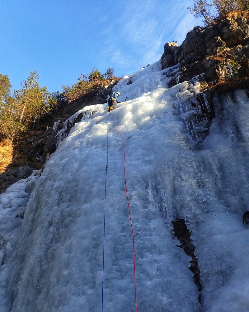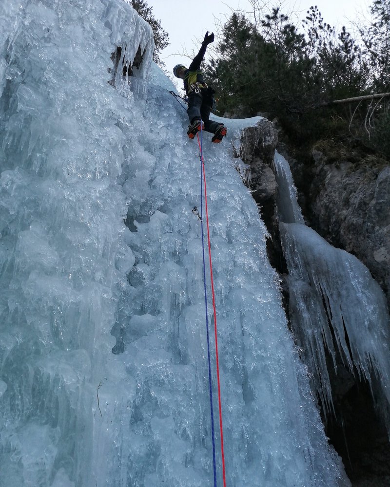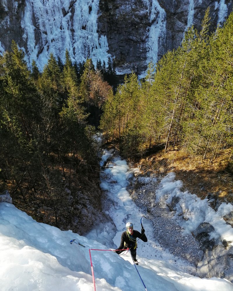 Der untere Teil der Router Futura ist ein gemütlicher Einsteigerwasserfall mit mehreren Aufschwüngen bis zum Schwierigkeitsgrad WI 3+