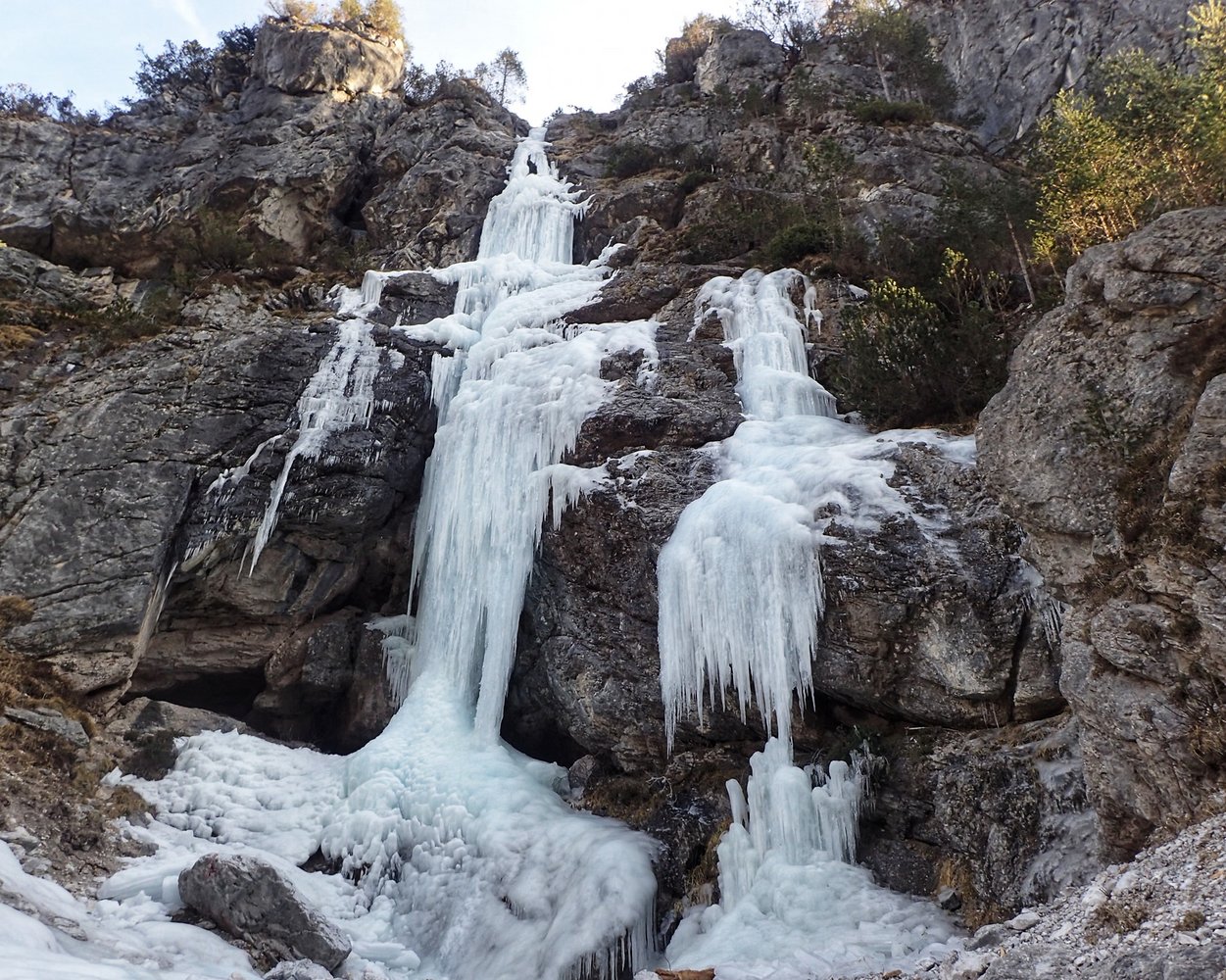 Von Sappada der Straße SR355 in Richtung San Pietro folgen. Vor der Lawinengallerie ist auf der linken Straßenseite ein großer Parkplatz der von zahlreichen Eiskletteren freqentiert wird.