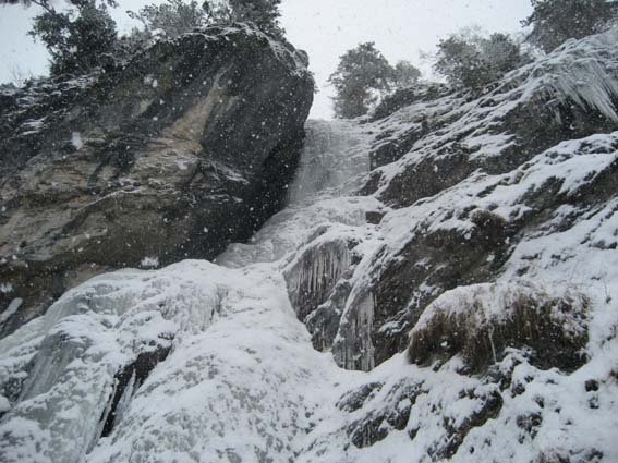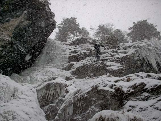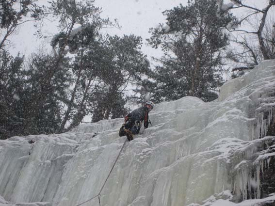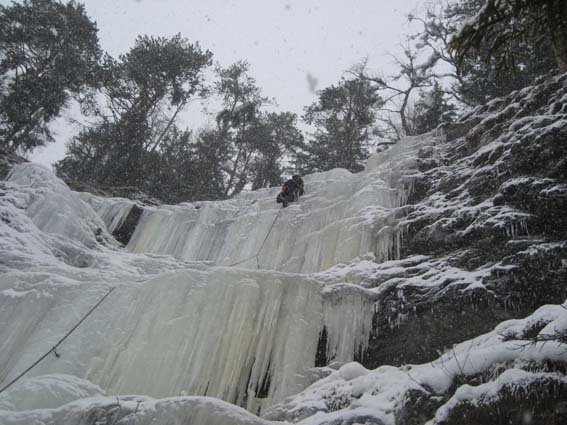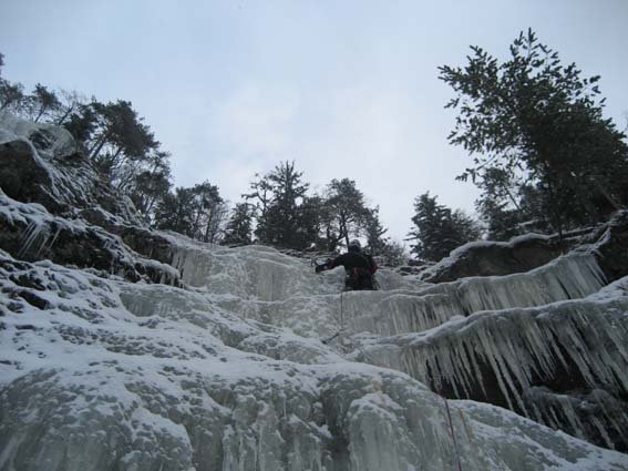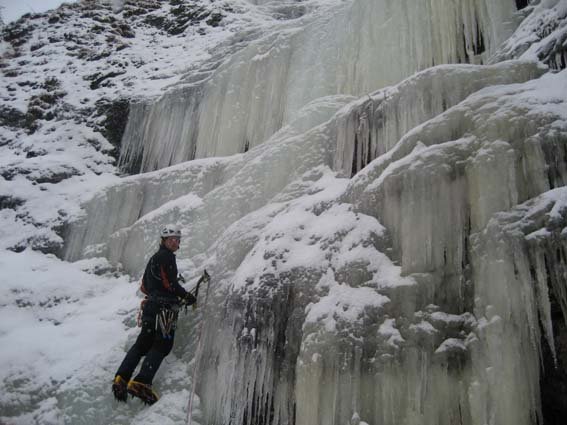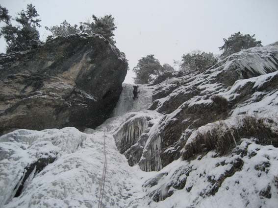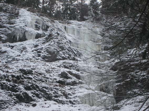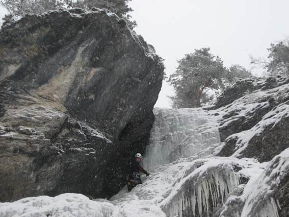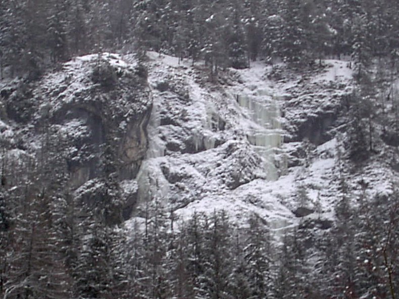 Zwei schöne Eisfälle mit kurzem Zustieg in einem weniger bekannten Gebiet. Der rechte Fall eignet sich auch gut für Anfänger, da alle zwei Seillängen an Bäumen gesichert werden kann. Der linke Fall ist schon eine Spur "schärfer" da das Eis wegen der südseitigen Lage oft dünn sein kann und dadurch der Vorstieg mit etwas Moral verbunden ist.