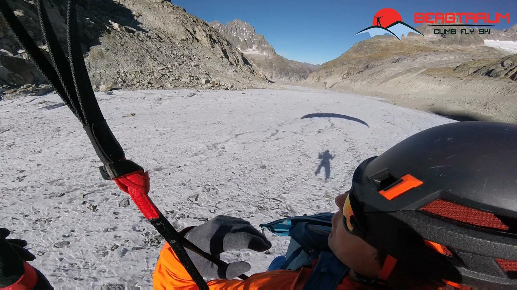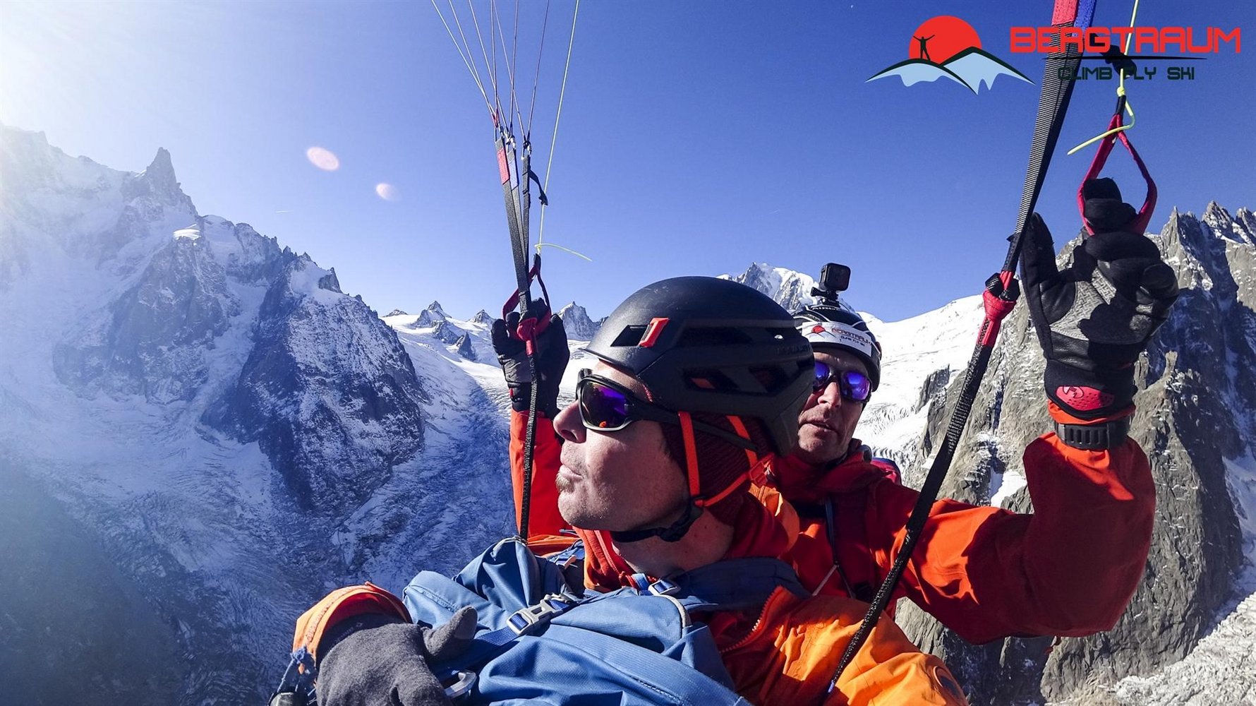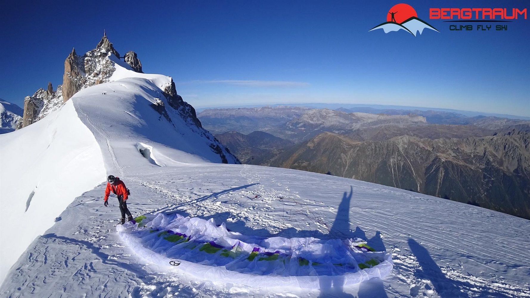 Alternative: mit dem Gleitschirm hochalpiner, steiler Startplatz Richtung Süden- Umrundung der Jorasses nach Norden und Flug nach Chamonix möglich (stellt höchste Anforderungen an den Piloten!)