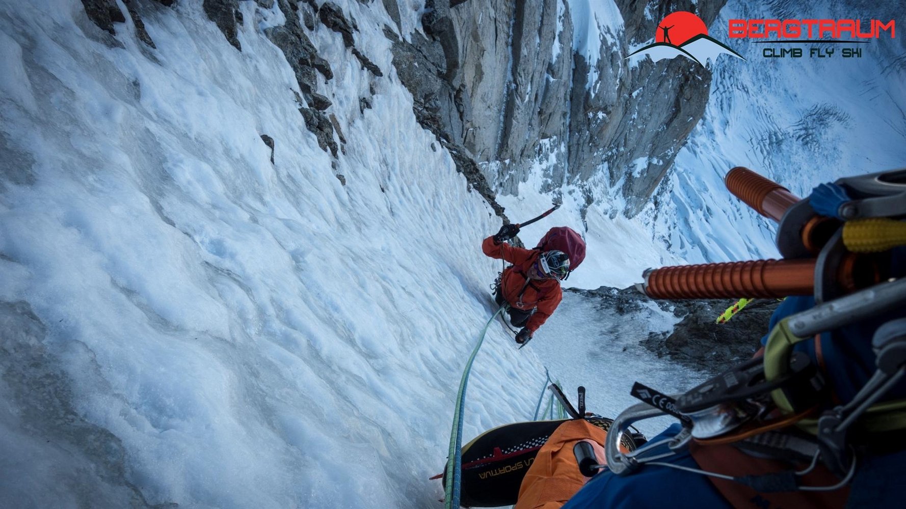 Halbseile 2 x 60 m, komplette Eisausrüstung, Abalakovschlingen, 5- 10 Exen, kleine bis mittlere friends, Messerhaken