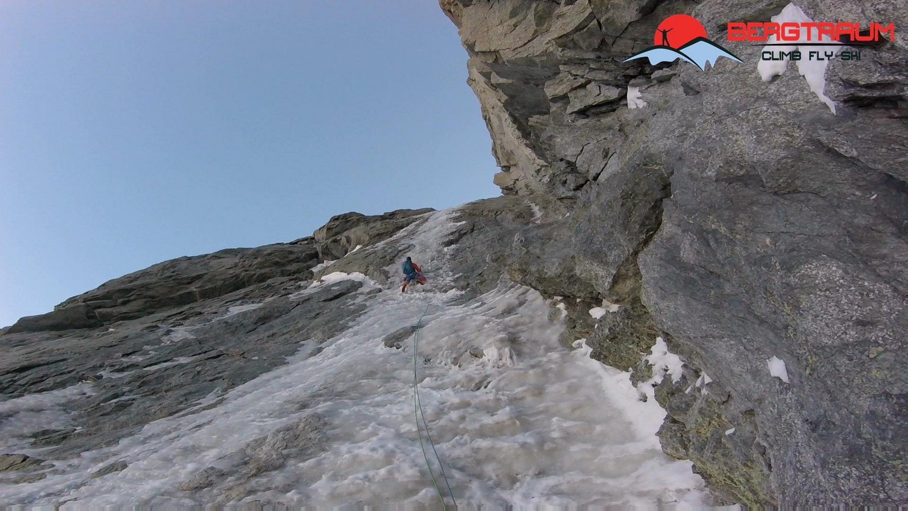 Je nach Schnee- bzw. Eisverhältnissen ändert sich der Charakter der Wand grundlegend! Bei Trittfirn und gesetztem Schnee ist im Mittelteil sogar eine Schibefahrung möglich, bei Blankeisverhältnisse ist es sportlich fordernd (Wadentraining de luxe!). Im unteren Teil am rechten Rand Absicherungsmöglichkeiten im Fels mit Friends und Messerhaken möglich.