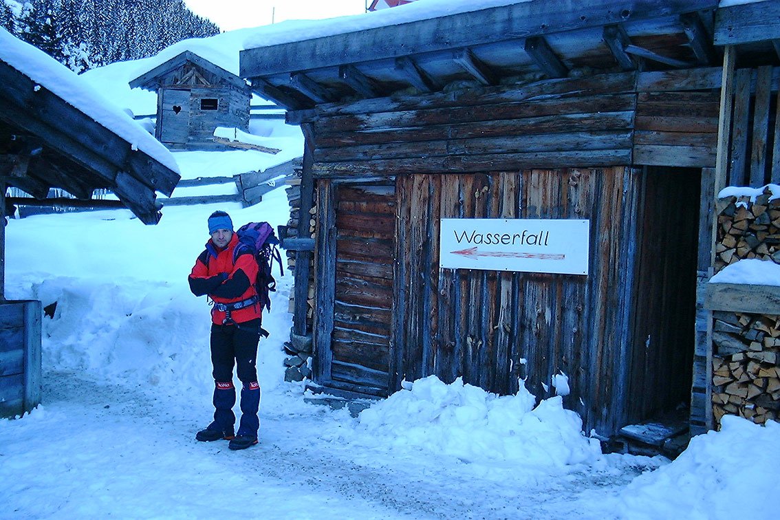 Der Sulzenaubach führt sehr viel Wasser, oft nicht ganz durchgefrorenr! Am besten nach langer Kälteperiode klettern.