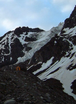 Günther Messner Biwak: Notunterkunft, nicht bewirtschaftet, 10 Plätze und renoviert im Jahr 2000 ! Die Hochfeilerhütte beim Abstieg (nur im Sommer offen) liegt etwas abseits der Route.