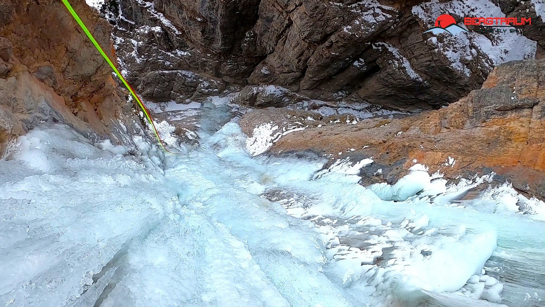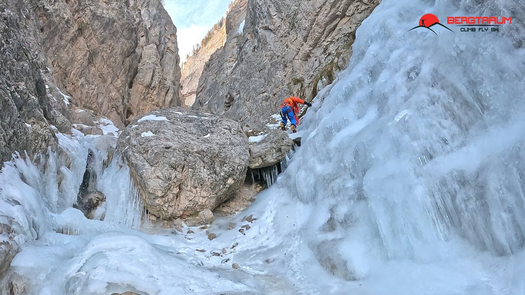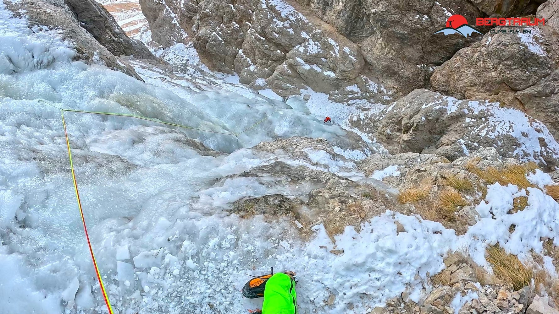 Beide Fälle liegen etwas versteckt in einer Schlucht und bieten tolle Kletterei in einer besonderen Umgebung. Beide Linien führen viel Wasser und sind bei wenig Eis im Ausstiegsbereich hinterspült. Stände an guten NH (haben diese aufgebessert). Ausrichtung Ost, bekommen aber nicht viel Sonne ab.
