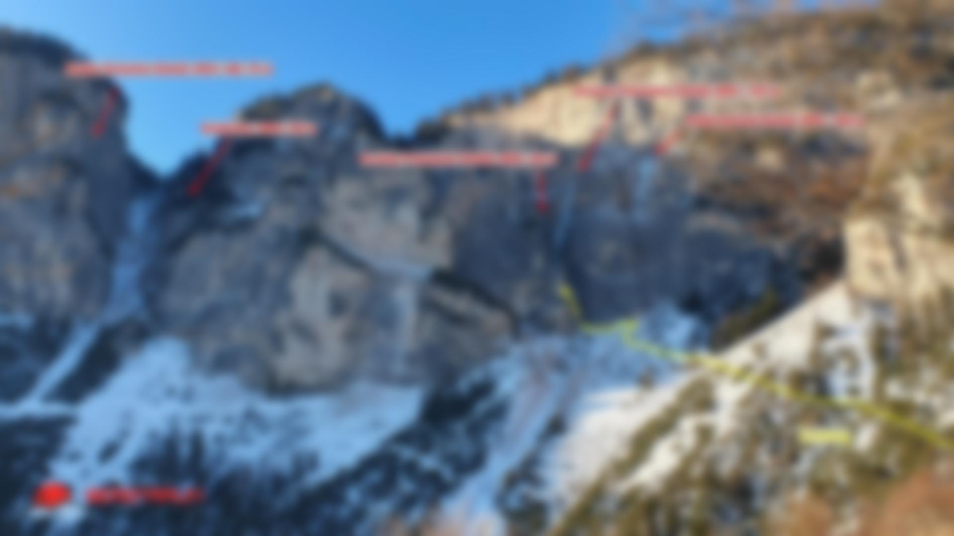 Zwei wunderbare Eisfälle in der Nähe von Bozen, die man am besten beide an einem Tag klettert. Im oberen Teil durchwegs steile und fordernde Kletterei. Bei wenig Eis wird’s im Ausstiegsbereich oft dünn. Einige weitere Linien im Nahbereich (Höllenstein Eisfall, Nosferatu, Gaider Scharten Eisfall)- es lohnt sich!