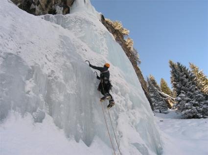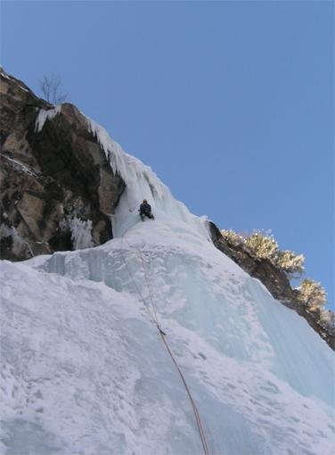 Je nach Eisbeschaffenheit um WI 5- bis WI 5