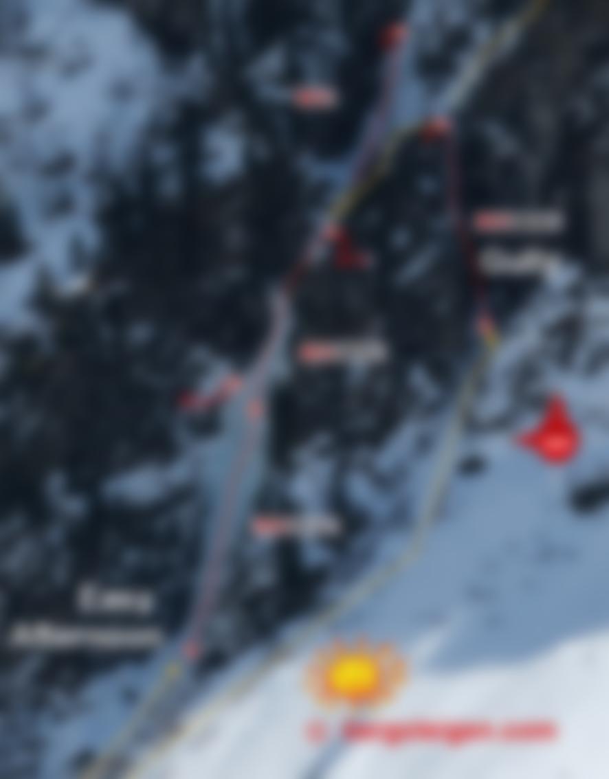Vom Alpengasthof Lüsens der Langlaufloipe (im Sommer Forstweg) taleinwärts bis kurz vor die Talstation der Materialseilbahn des Westfalenhauses folgen, dann direkt unter dem Eisfall aufsteigen (zum Schluss steil) Den Easy Afternoon ansteuern und aber rechts einmal um die Ecke in die Rinne (die Rinne ist etwas versteckt, rechts oberhalb vom Easy Afternoon).