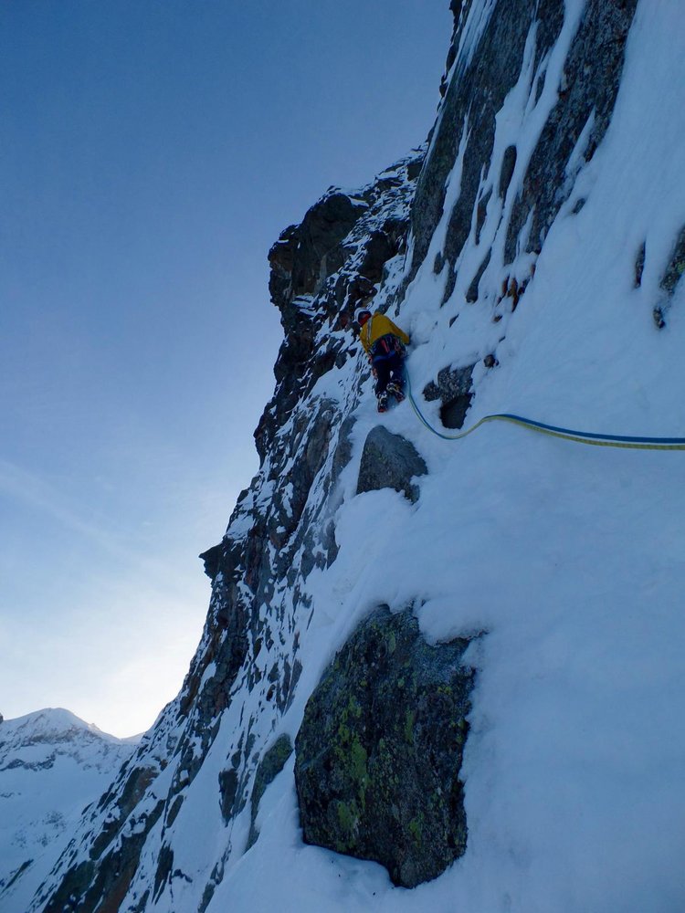 Bei der Route handelt es sich um eine anspruchsvolle kombinierte hochalpine Route bei der Wiederholer über viel alpine Erfahrung verfügen sollten.