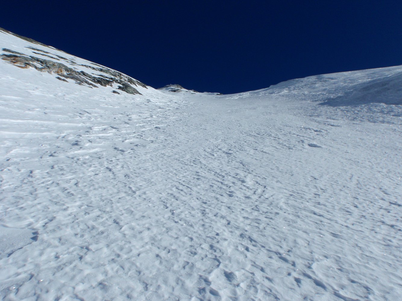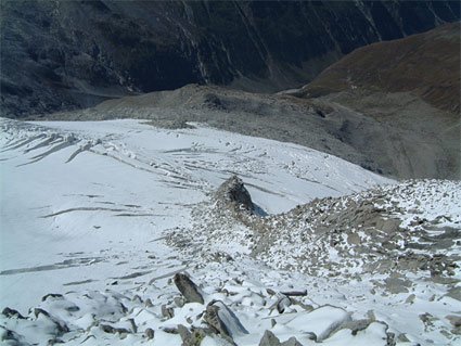 Tour geht auch im Sommer (Blankeis), die Fotos sind von Ende September 2003. Auch der Abstieg ist äußerst anspruchsvoll - brüchiges Blockgelände. Siehe auch Normalweg.