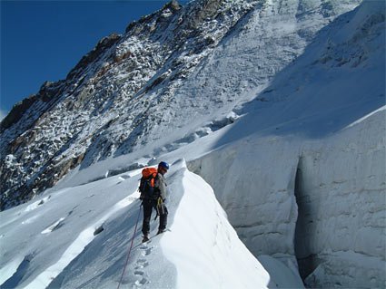 Hochalpine steile Eistour, kompl. Eisausrüstung und Seil sind erforderlich.
