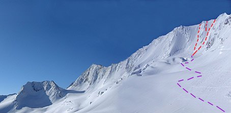 Vorsicht bei Lawinengefahr und auf Wechten im Ausstiegsbereich.