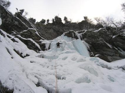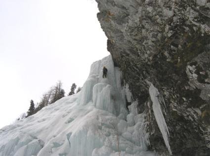Größter Eisfall in der Anlauftal-Eisarena, wegen der niedrigen Schwierigkeiten vor allem bei Einsteigern beliebt.