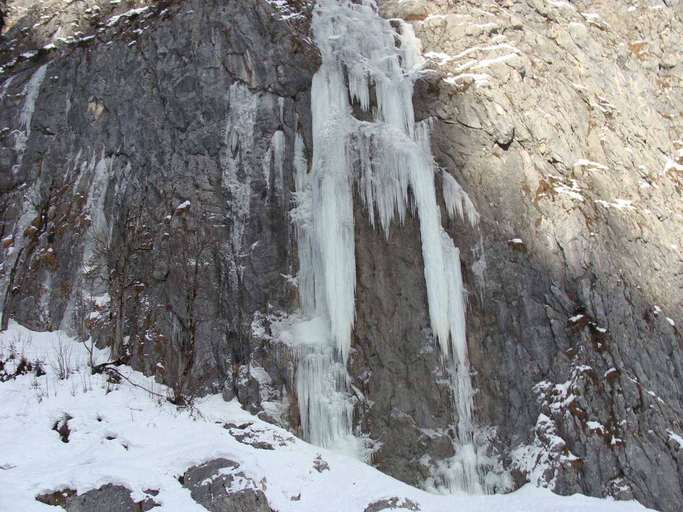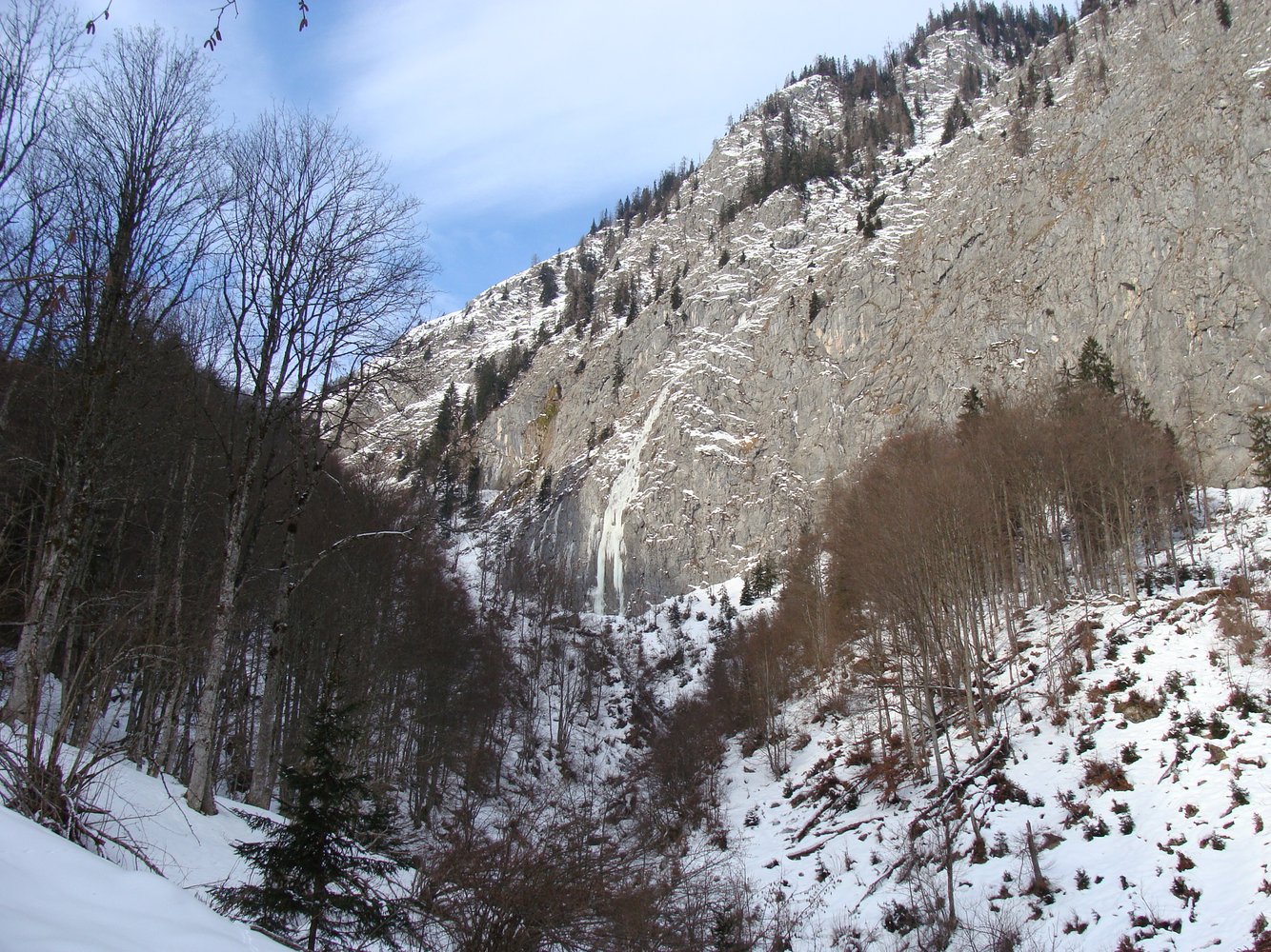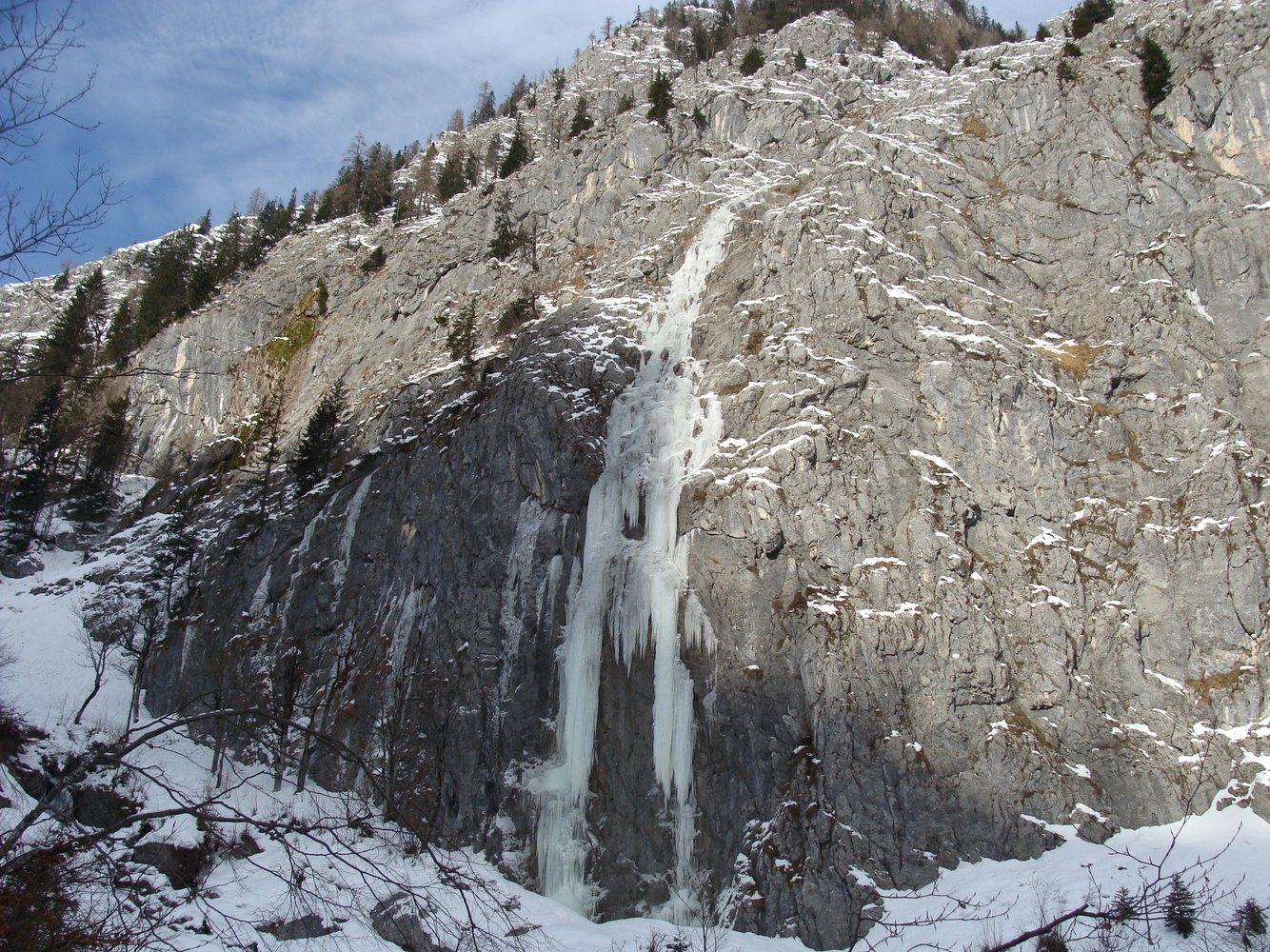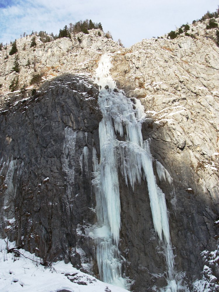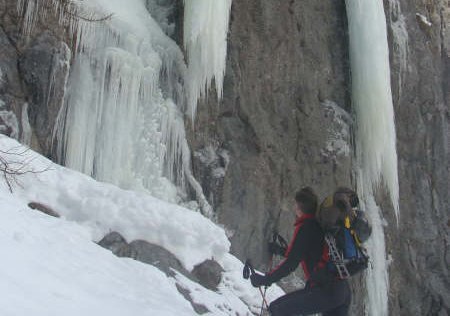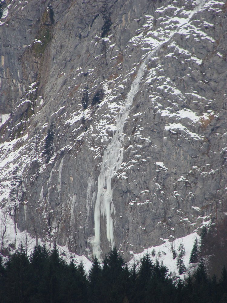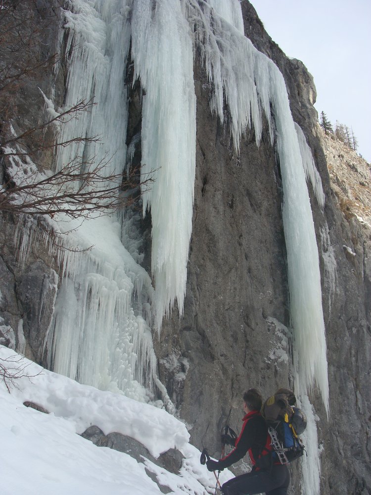 bis ein Bach den Weg kreuzt. Vor dem Bach geht ein Forstweg links weg, diesen folgen bis man in den Graben kommt. Links vom Graben entlang nach oben gehen und erst beim Eisfall nach rechts queren.