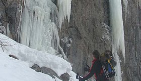 Abseilen über Eisfall