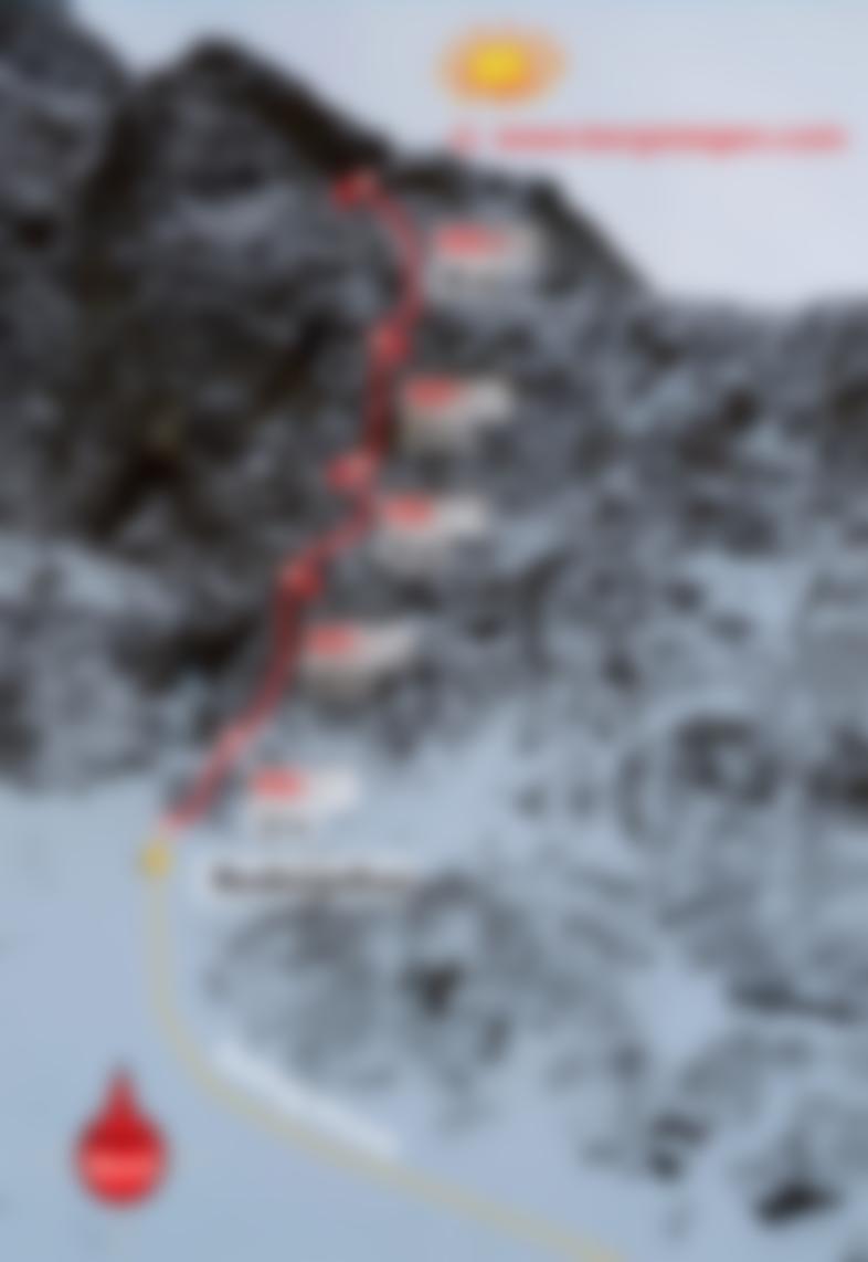 Zu Fuß oder besser mit Ski von Haggen ins Kraspestal. Nach einer halben Stunde erreicht man die flache Zwingebene. Vor der ersten Zwinge (Talverengung), geht man den dem Burgschrofen vorgelagerten Hang hinauf zum Einstieg.