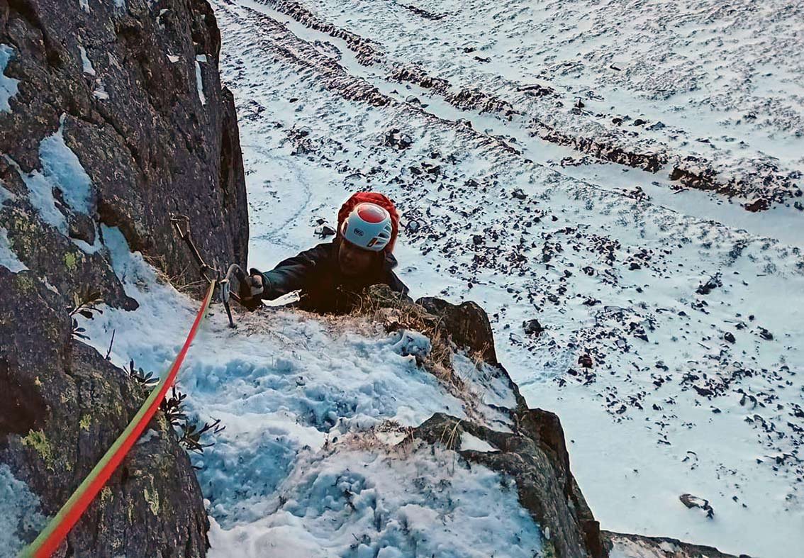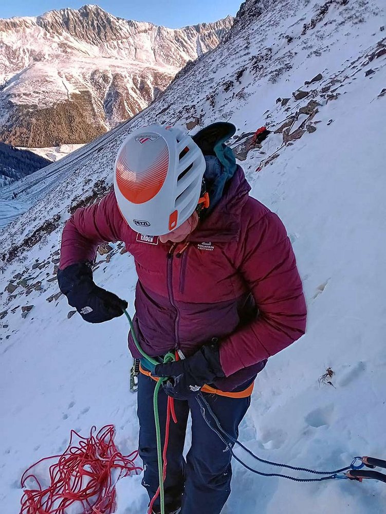 Eis- und Mixedkletterausrüstung und ein Grundsortiment an mobilen Sicherungen.