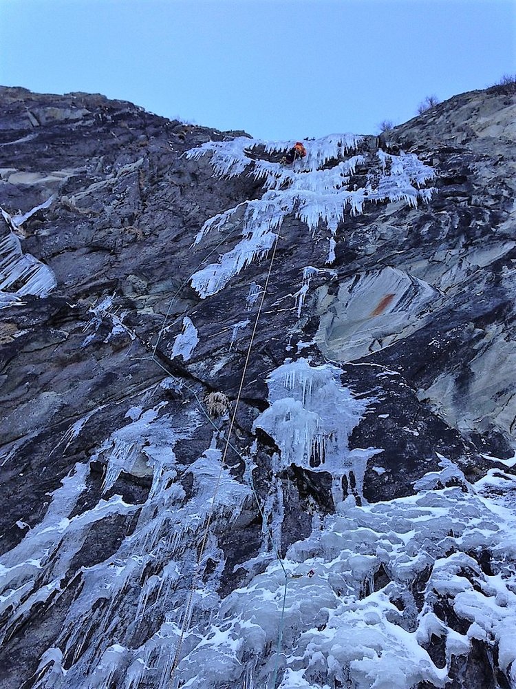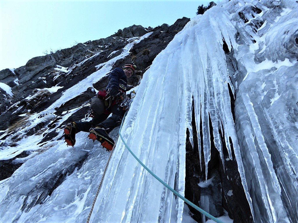 Spektakuläre Mixedlinie, die gefinkelte Mixedkletterei in sehr gutem Fels und auf Eisglasuren bietet. Es sollte unten schon einiges an Eisglasuren vorhanden sein, sonst wirds richtig schwer. Auch der Eispart oben ist gar nicht so leicht. Die Mixedlänge ist mit 5 Bohrhaken und 2 Normalhaken relativ gut abgesichert, einige Stellen lassen sich mit C3s noch entschärfen. Die Tour lässt sich ideal mit Thors Hammer bzw. MEIN SCHATZ kombinieren, die direkt rechts vom Icebreaker liegen.?Achtung: Wie bei allen anderen Fällen im hinteren Seebachtal ist auch hier die starke Lawinengefährdung aufgrund des großen Einzugsgebietes oberhalb zu beachten (auch der letzte Hang im Zustieg ist recht steil). Dabei die südseitige Exposition beachten!