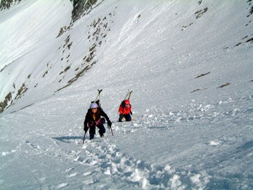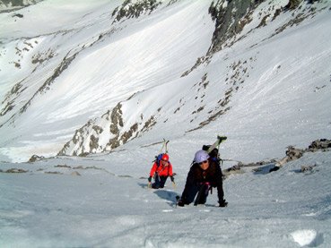 Firn/Eis bis max. 45° bzw. bei Ausapperung Fels 1 - 2 meist am Ende der Rampe
