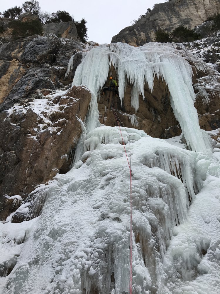 Abseilen über Eisfall