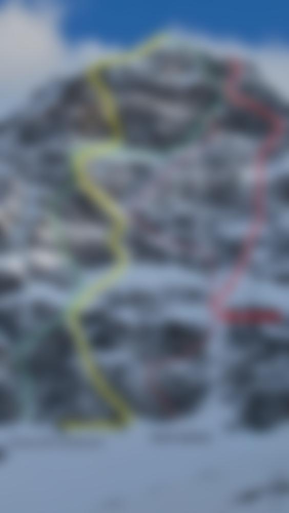 Im unteren Drittel ist der Fels gut, danach kombiniertes Gelände und Schneefelder bis 45°. Bei weinig Eis und Schnee schwieriger. Beste Verhältnisse im Frühjahr.