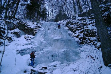 Gleich oberhalb des Lindenbrunner Wasserfalls gibt es noch zwei leichte und einen schweren Übungsfall, die über den Steig und ein Fixseil leicht erreicht werden können. Obwohl sie mit ihren rund 20 m nicht besonders hoch sind, eignen sie sich ideal zum Anfangen bzw. für die ersten Schritte im schweren Eis, da das Topropen gut möglich ist.