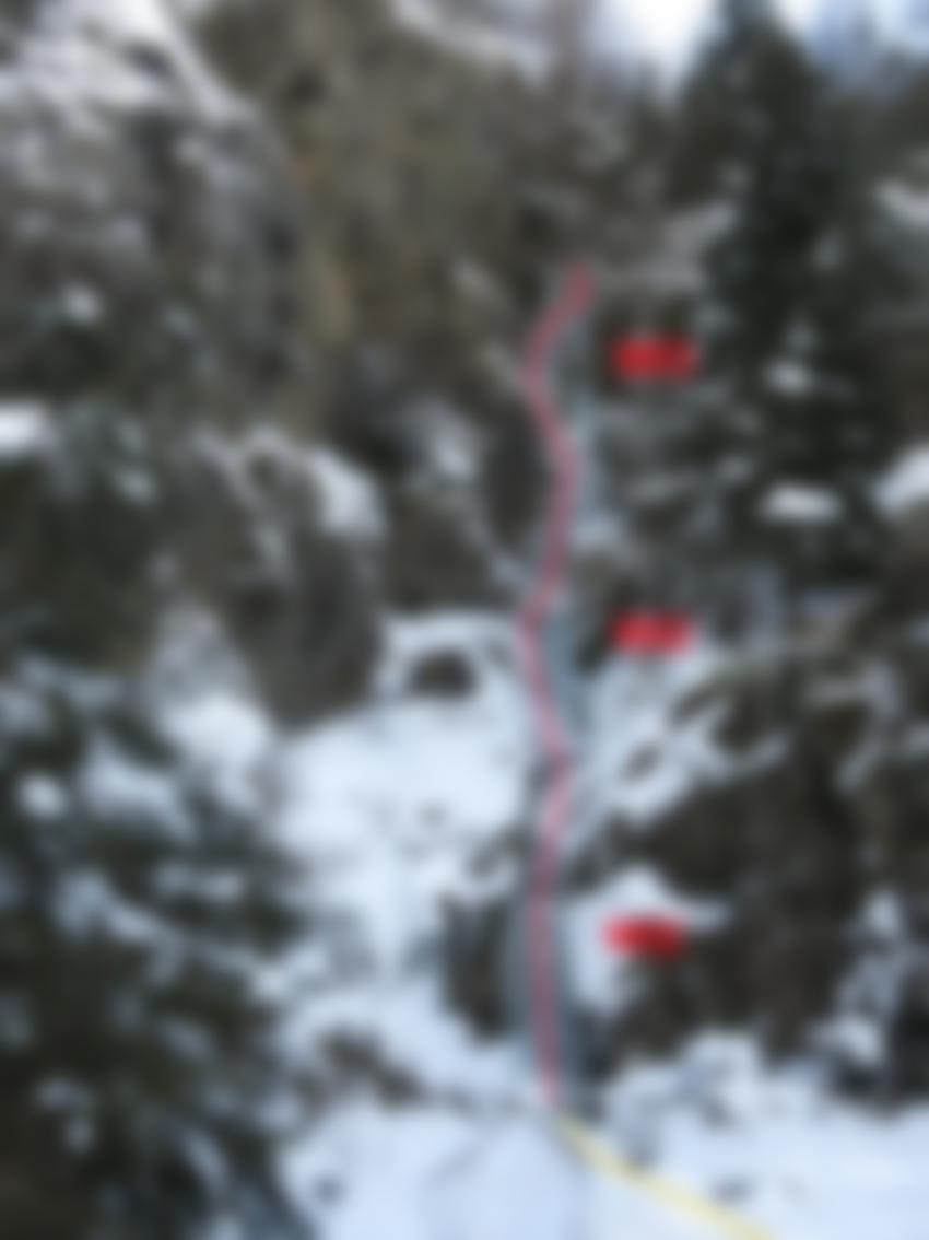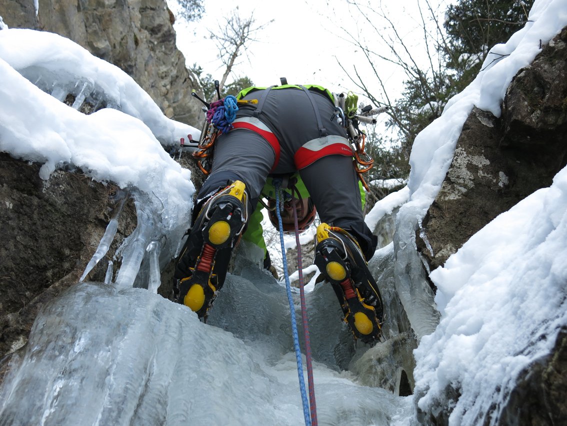 Tipp: Ca. 100m den Klettergarten weiter gibt es noch den Eisfall „MacGyver“ (WI4+), sowie einige anspruchsvolle Mixed Linien.