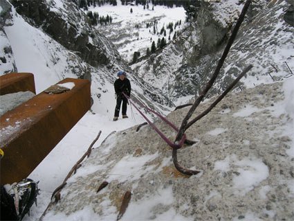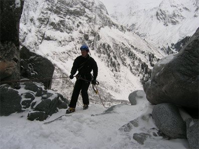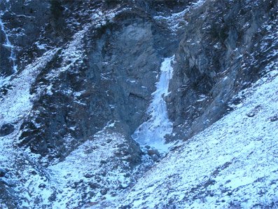 Der Fall wird von einem Wasserschwall bedroht, da sich das Überdruckventil automatisch öffnen kann - es muß jeder selber entscheiden, ob er sich dieser möglichen Gefahr aussetzt oder nicht. Vorsicht, Fall und Zustieg akut lawinengefährdet!