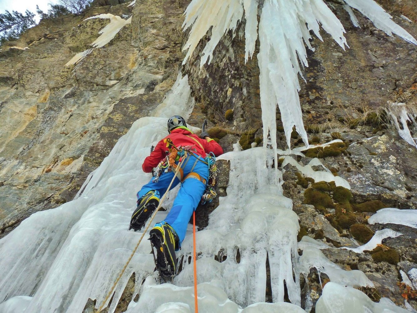 Steile Eislinie mit kurzer Felspassage links der Route Badewanne (siehe Eiskletterführer Tirol). Ein Standplatz (ausßerhalb Eisschlag) und ein Schlaghaken befinden sich in der Tour. Der Rest kann im Eis gesichert werden. Die erste SL kann umgangen werden, die 2. SL ist recht dünn, gefrorene Graspolsterkletterei.