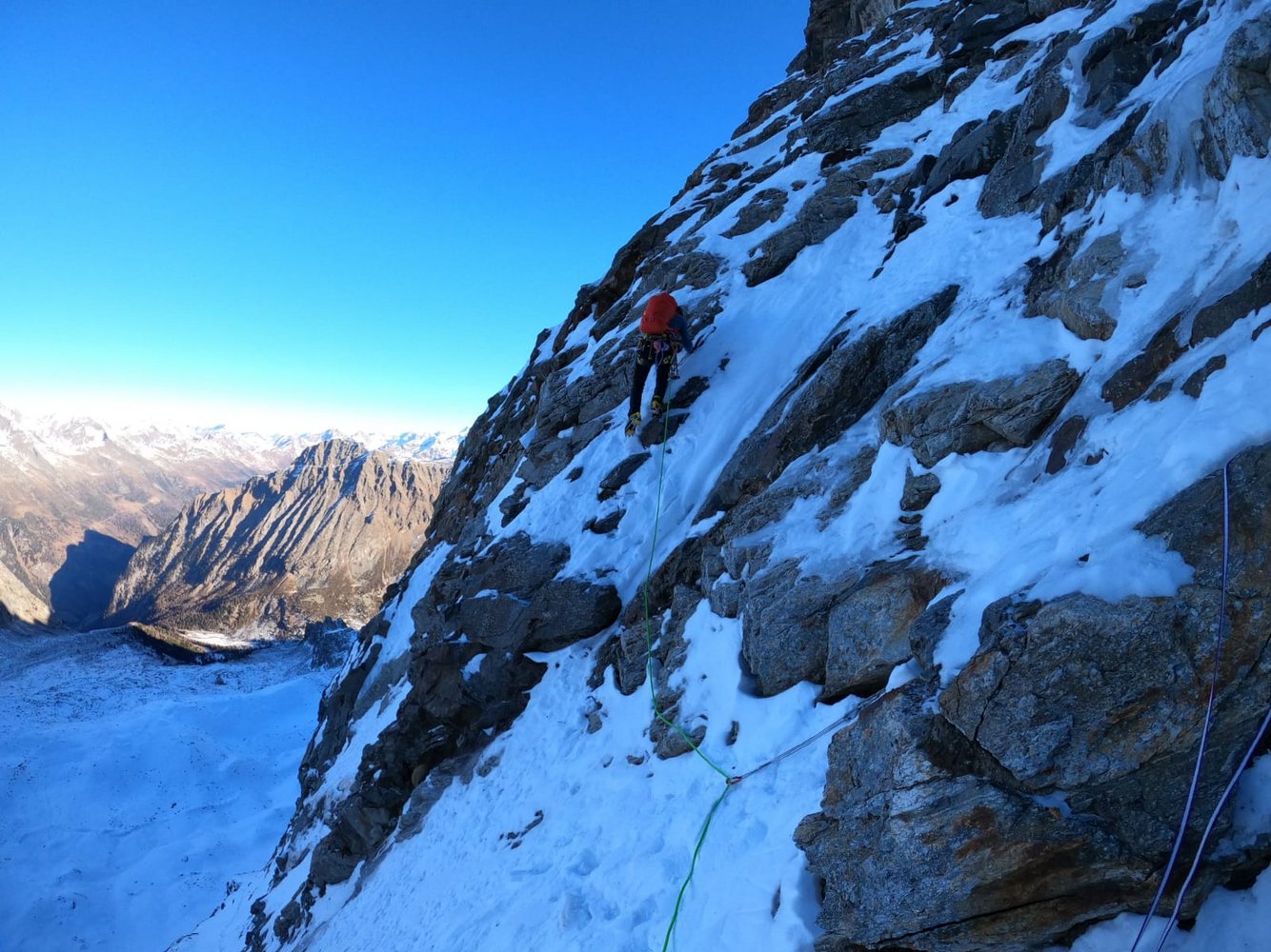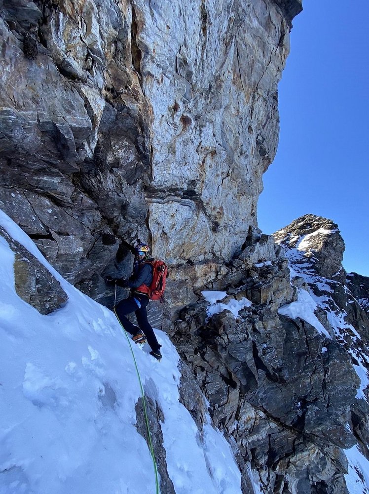 Schöne kombinierte Kletterei auf teilweise brüchigem Fels nur bei kalten Temperaturen empfehlenswert!