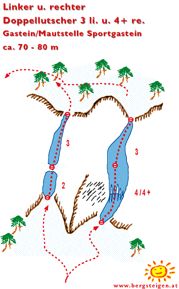 Linker, leichter Bruder des rechten Doppellutscher im Bereich der Mautstation. Ideal für Anfänger. Der kurze Zustieg und und die guten Abstiegsmöglichkeiten zeichnen diesen Fall aus.