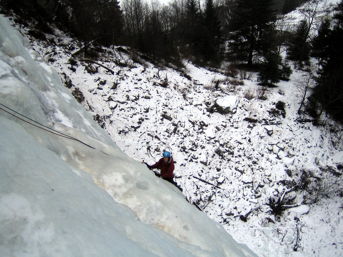 Schöner von der Straße aus gleich sichtbarer Eisfall der auf den ersten Metern nicht ganz leicht ist und bei wenig Eis auch eine freistehende Säule bildet.