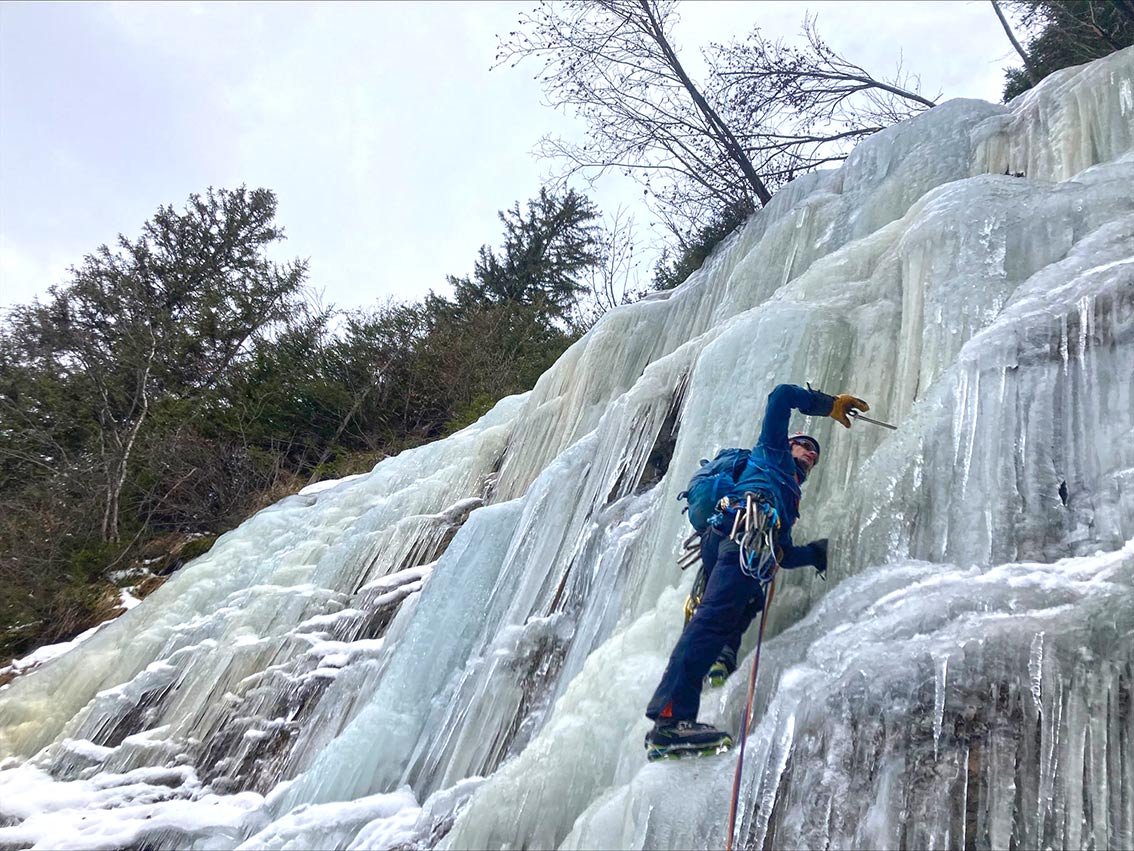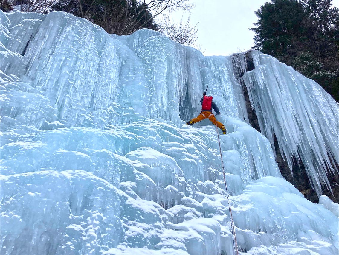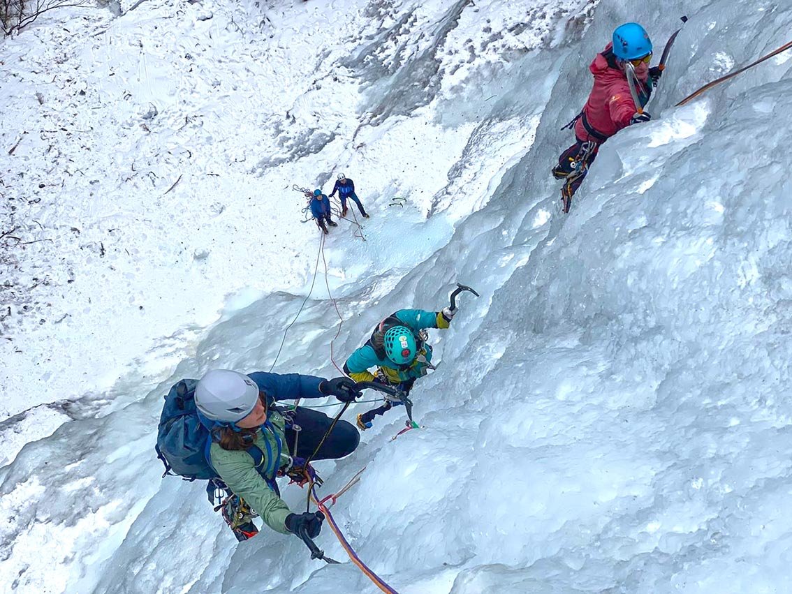 Langer Eisfall mit vielen Varianten direkt im Ort - deshalb stark von Kursen frequentiert.