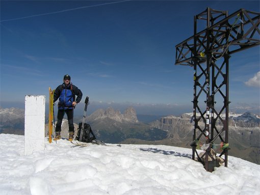 Vom Gipfel wieder in Richtung Rücken zurück (zwischen Nordwand und Nordwestwand) und auf diesem bis zu einer Flachstelle hinunter, dort rechts in das Becken unter der Nordwand. Von dort entweder zur Bergstation der Gondelbahn (Rif. Pian dei Fiacconi, 2626) und von dieser zum Parkplatz. Alternativ kann man vom Becken unter der Nordwand zu einer Scharte unter einem mark. Felszacken queren, wieder zurück auf den Aufstiegsweg und über diesen zum Parkplatz.